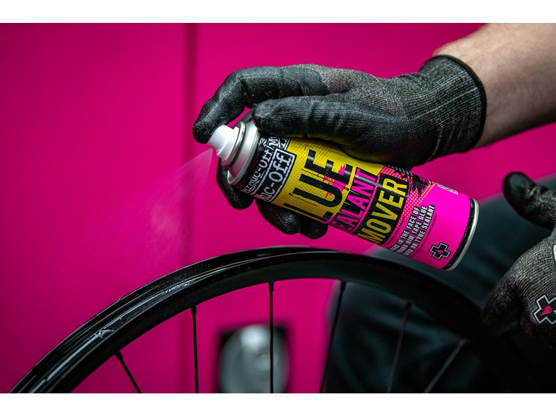 Muc-Off Glue & Sealant Remover hjælper med at fjerne lim fra fælgtape, lappevæske fra tubeless og rester af lappevæske fra fra indersiden af fælgene (og mange andre overflader). Perfekt til rengøring når din tubeless lappevæske skal fornys eller der skal nye dæk på cyklen.