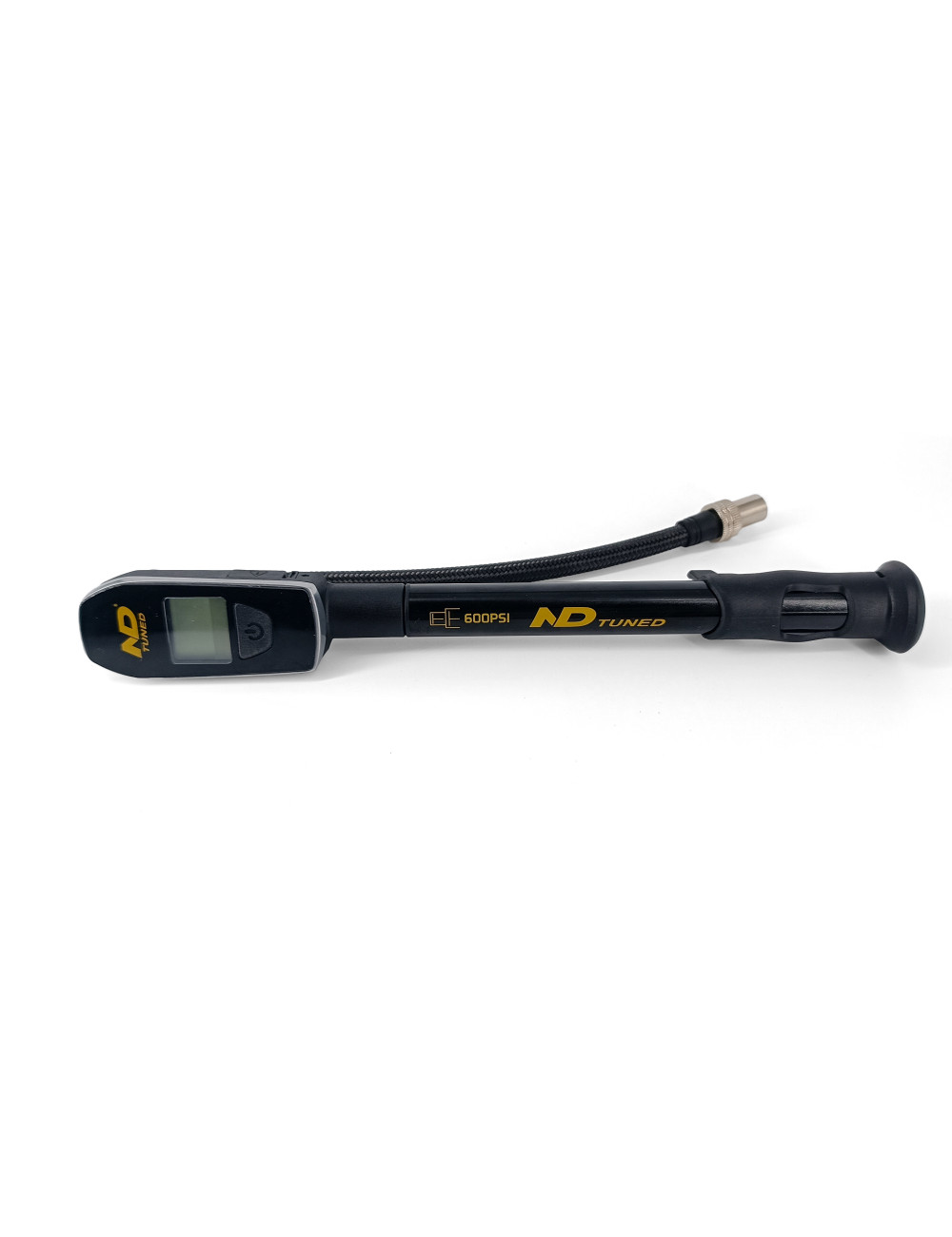 Digital air pump with a maximum pressure of 600psi, equipped with a reinforced racord, guaranteeing greater durability.